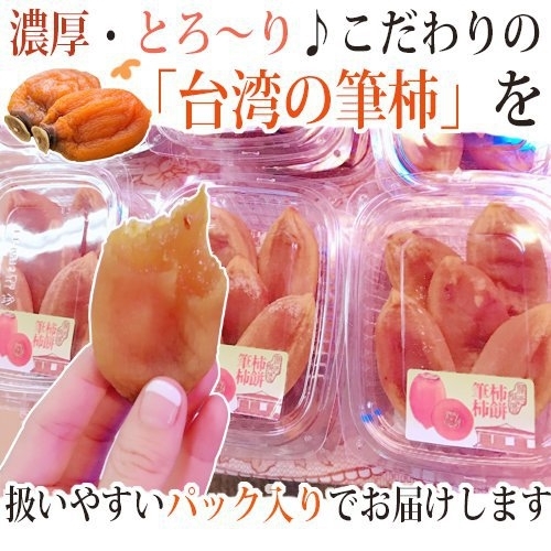 筆柿因為是長條形較一般圓形柿餅費工,吃過日本富山干柿的朋友都知道,日本富山干柿就是以筆柿所做成的,柿子的營養豐富,含β-胡蘿蔔素膳食纖維、維生素A、鉀、鈣、胡蘿蔔素、醣、蛋白質、鐵,不僅配茶點絕配,更可以補充人體基本營養所需!